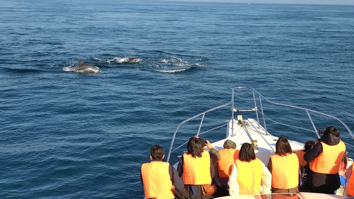 ADolphin families usually hung out in the area, 10 minutes away from the Futae Port. However, they are free and wild. They travel far out at sea sometimes. In that case, it takes a while to find them.