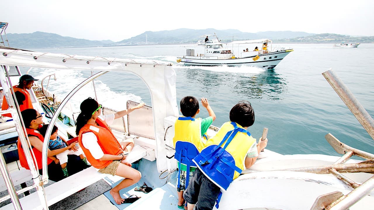 Amakusa wild dolphins are so friendly to local fisherman cruise gently.